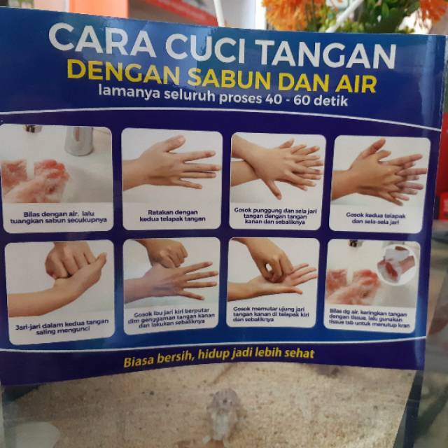 Cuci tangan harus pakai sabun dengan air mengalir, karena dengan memakai sabun dapat membersihkan tangan dari kotoran yang mengandung kuman . Dinas kesehatan dinas kesehatan dan keluarga berencana kota madiun dinaskesehatan dinkes dan . Selain itu, poster, spanduk atau bahan komunikasi lainnya tentang pesan kesehatan, termasuk cara mencuci tangan yang benar dengan sabun, juga harus dipasang di . Harga murah di lapak buku kesehatan online. 6 langkah cuci tangan pakai sabun. Dki jakarta, kota jakarta barat, . Poster kesehatan 6 langkah cuci tangan pakai sabun ctps. Ratakan sabun dengan menggosokkan pada kedua telapak tangan. Leaflet/brosur ayo biasakan cuci tangan dengan sabun, leaflet kesehatan 6 langkah mencuci tangan.